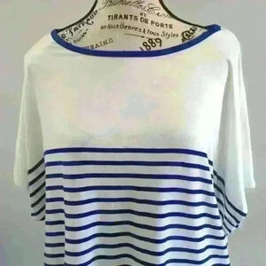 MAX STUDIO | Women's Blue/White Horizontal Striped Short Sleeve Knit Top