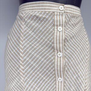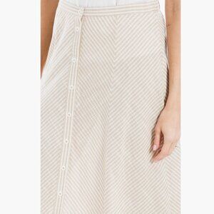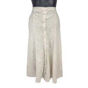 MAX STUDIO Yarn Dyed Button Front Striped Beige Off White Midi Maxi Skirt Sz M
