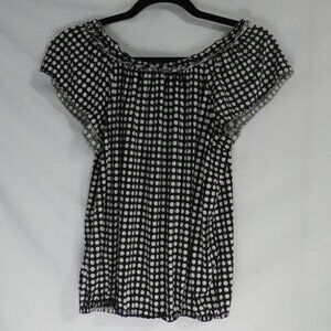 MAX STUDIO | medium | Top Cap Sleeve Blouse | Black & White Circle Design