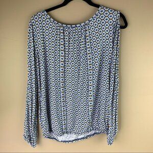 Max Studio I Blue WhiteI Cold Shoulder Blouse