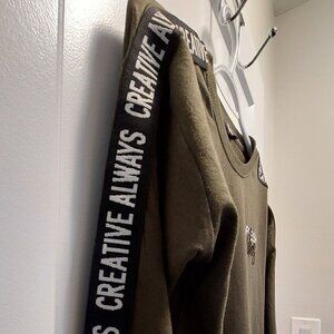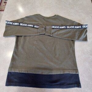 MAX Women's Typographic Print Crew Neck Long Sleeves Sweatshirt Olive/Black SML