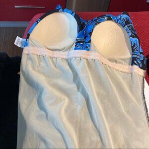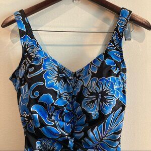 MAXINE OF HOLLYWOOD One Piece Hawaiian Floral Modest Ruched Swimsuit NWOT Sz 16. Sanitary liner is still on.