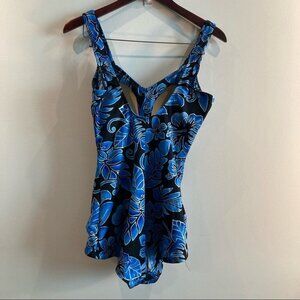 MAXINE OF HOLLYWOOD Sz 16 One Piece Hawaiian Floral Modest Ruched Swimsuit