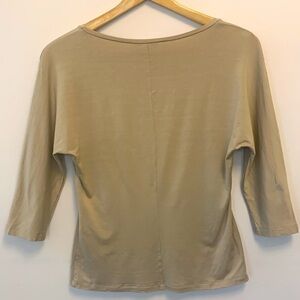 MAXMARA scoop neck 3/4 sleeve jersey knit top fitted scoop neck beige medium