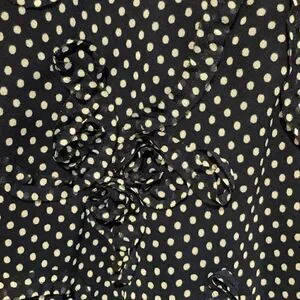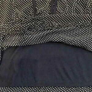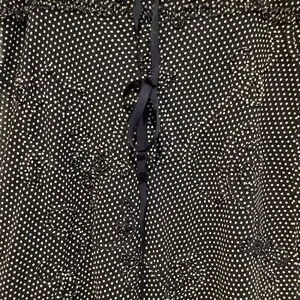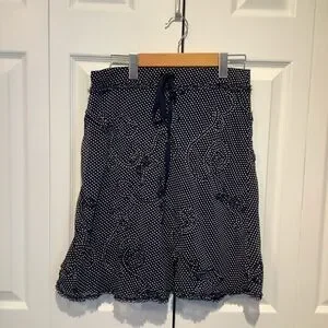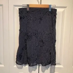 Feminine and flirty navy and white polka dot skirt. Thick elastic waist with drawstring. Patterned overlay as seen in pics with hemline to match. I don’t think I have ever worn this 🤷♀️.