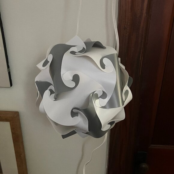 Plug-in pendant light that I thought was from IKEA, but upon further investigation, maybe not? Anyway, looks Danish and is put together in a very IKEA way. Plugs in and has a twisty LED bulb in currently. If you purchase, I will wrap it up well in bubble wrap and place in a large box so it stays assembled. Is not fragile, but def can be taken apart and reassembled, if you like that sort of thing. I don't.