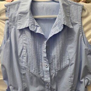 MAYE Periwinkle Blue Cotton Shirtdress Sleeveless Pintuck Midi Dress | Medium