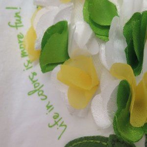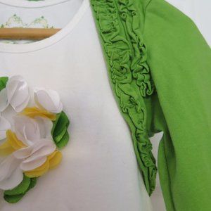 Green Bolero with ruffle edges - Note material composition label cut out as it was situated under the arm and tickled - see last photo - However, material feels like cotton.