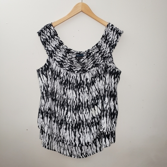 MBLM Tess Holiday Black & White Print Blouse 3X
