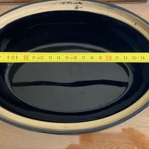 Striking and Dramatic Denby Mid-Century Modern Black and White Lidded Casserole Dish. Stoneware Made in England, Farmhouse Kitchen Chic. This piece will look equally at home in a Modern inner-city apartment or a farmhouse kitchen. Made by Denby in England, it's robust and sturdy, ready to work its magic in the oven or add style to your dining table. It's in excellent condition, it has no cracks, or chips or repairs. The base is stamped with a capacity of 2.75 imperial pints, which equates to 1.5 liters. This is a great piece for a serious cook, or just a lovely display piece.