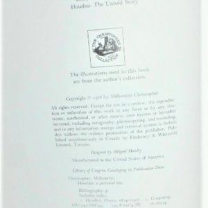 MC2 1976 1st Ed. HOUDINI A PICTORIAL Milbourne Christopher Magic Trick Book