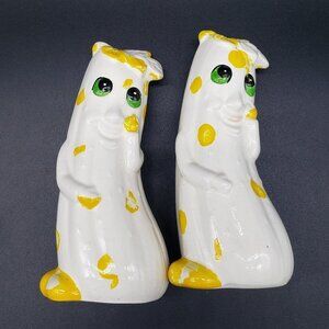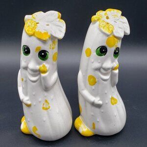 MCM Anthropomorphic White Yellow Cucumber Ceramic Salt & Pepper Shaker AS IS