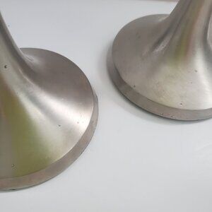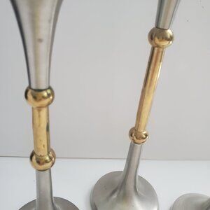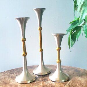 MCM / Art Deco Candle Holders 3pc Graduated Set Stainless Steel & Brass INDIA
