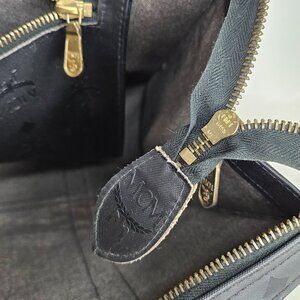 Stylish black nylon shoulder bag featuring a zip-top closure and antiqued gold-tone hardware.