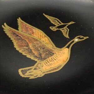 COUROC CANADA GOOSE Bowl Mid Century Wood Metal Inlay . Limited Edition designed exclusively for Kalium Chemicals in Canada.