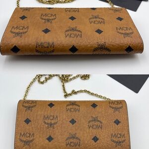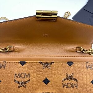 MCM Full set wallet on chain crossbody bag Millie leather Camel in leather logo