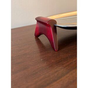 An MCM Glo-Hill for Gourmates Chrome Tray with a Red Bake-light finish. Ideal for all genders, this tray is perfect for serving and displaying.