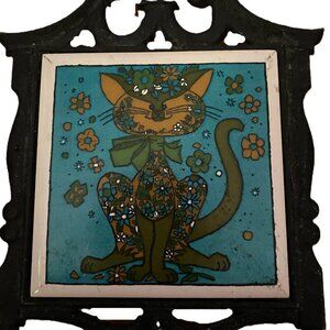 Vintage Mid century modern/70s Holt Howard Groovy 1970's Cat Tile Cast Iron Trivet or Wall Decor