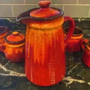 MCM Jacques Garnier Estriceram Canada Orange Drip Glaze Coffee Pot Genin Trudeau