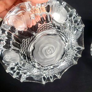 MCM Large Luxe Crystal Cigar Ashtray Cut Glass w/ Centric Frosted Rose & Buds