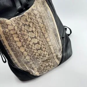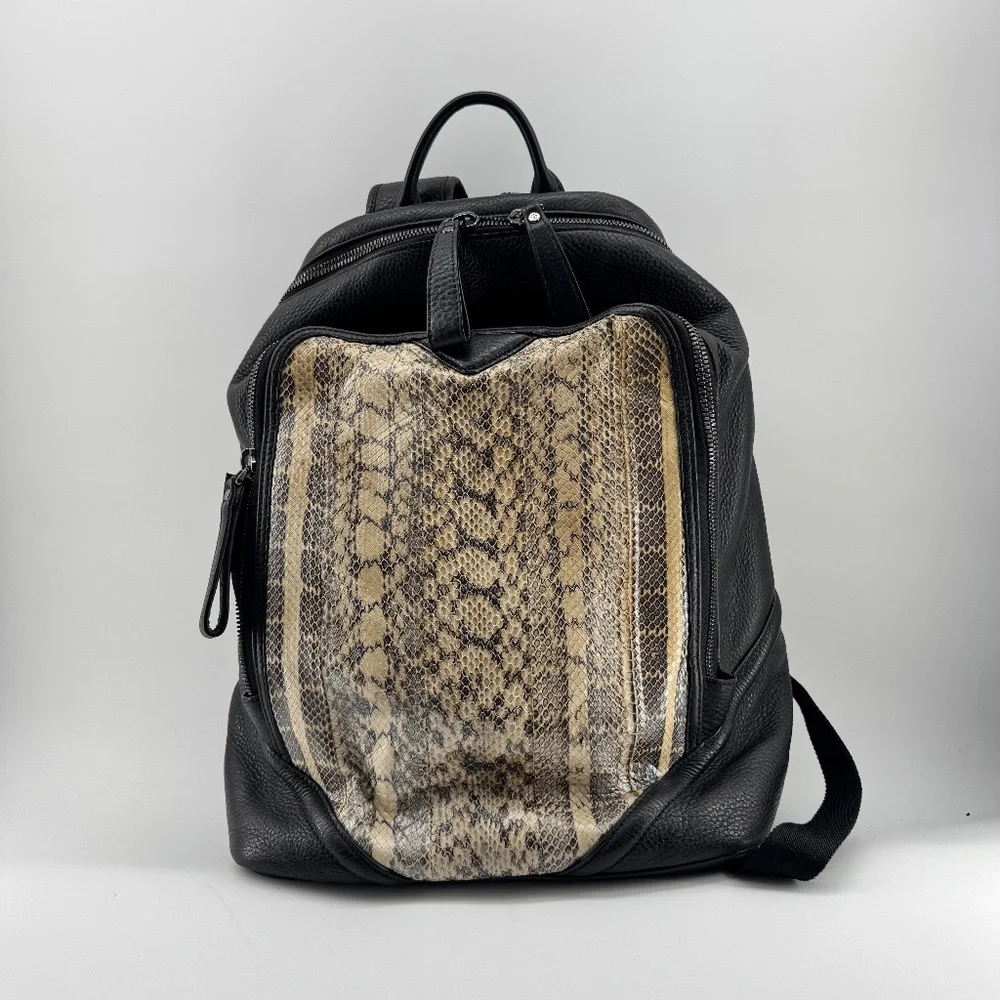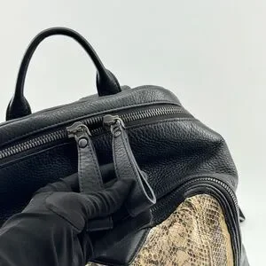 Turn heads with this luxurious and edgy MCM backpack, crafted from premium black pebbled leather and featuring a striking faux python snakeskin front panel. A perfect mix of high fashion and functionality — ideal for everyday wear, travel, or making a bold statement.
