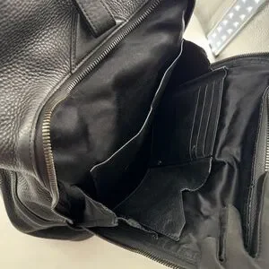 -Top leather handle and adjustable padded shoulder straps