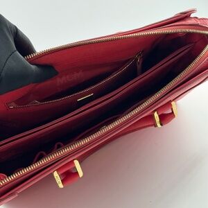 hic and elegant MCM satchel in vibrant red leather with signature gold-tone hardware. Perfect for adding a pop of color to any outfit — whether you’re heading to work, brunch, or a night out.