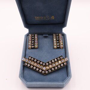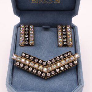 MCM Rhinestone Encrusted Brass Earrings & Brooch