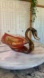 Smokey brown, red, yellow and clear swirled glass swan candy dish. Very sturdy as the neck extends into the base of the bowl. Last photos show in natural light - photos don’t do her justice, she’s gorgeous! Handmade and blown Murano style.