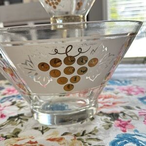 MCM Vintage Glass chip and dip Set with Grapes Design