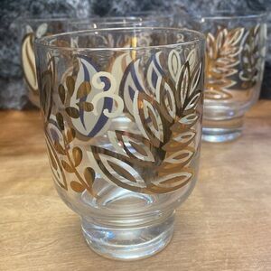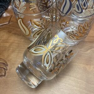 Elegant set of 5 glasses with gold and brown patterns. Perfect for any occasion. Excellent condition