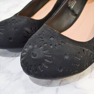 Add a touch of elegance to your wardrobe with these black suede wedge heels, perfect for any occasion. These heels offer both style and comfort with a sleek design that elevates any outfit.