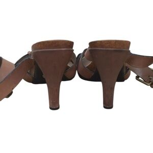 ME TOO Women's Tan Sandals Leather Straps Summer Chunky Heel Pump Up size 10