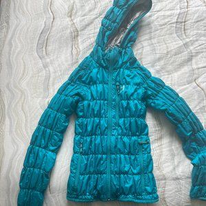 Blue puffer jacket from MEC. A couple years old, good condition. Size small (fits tight)