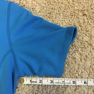 MEC Bright Blue Bubble Short Sleeve Zip Collar Mock Neck Sports Top