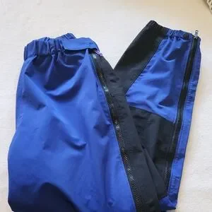 MEC - full zip access from top or bottom - GORTEX full seam sealed- great for hiking - skiing - any out door activity. Velcro waist for micro adjustment and maximum comfort.