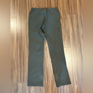 MEC Hiking Pants in olive green. US Size 8. Elastic waistband with 3 zippered pockets. Material is water resistant and has two-way stretch. Lightly worn in excellent condition. See photos for measurements.