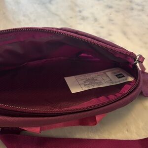 Brand new compact maroon waist pack with secure zip closure. Ideal for travel and daily use.