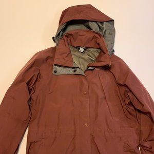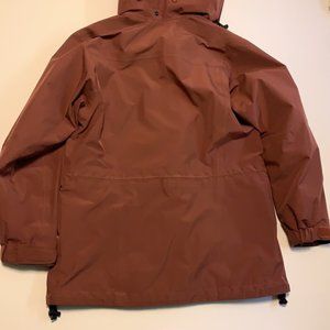 VGUC Mountain Equipment Coop (MEC) vintage maroon shell / windbreaker with hood and drawstring waist in women’s petite size small.