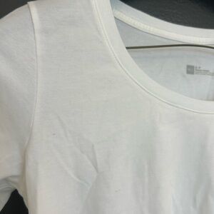 MEC NWT S cotton logo white shirt with small front logo larger back logo light.