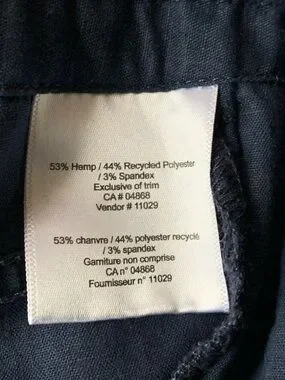 Material: 53% Hemp, 44% Recycled Polyester, 3% Spandex