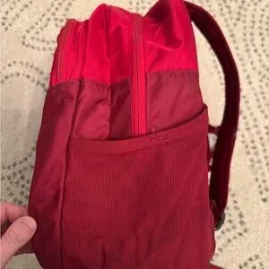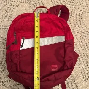 Compact and versatile MEC backpack. Features bold red with a silver reflective strip for safety. Ample pockets and also a cushioned section for laptop or tablet. Perfect for daily essentials.
