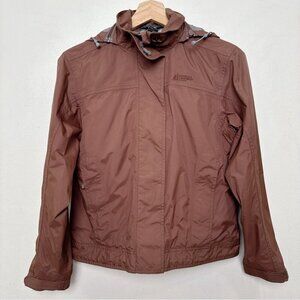 MEC Womens Small Petite Brown Windbreaker Hooded Jacket