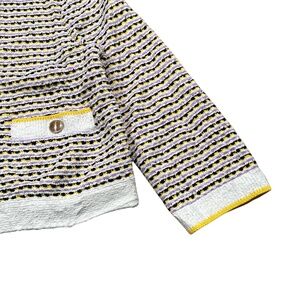 ME+EM Jacquard Summer Jacket Cotton Knit Striped Cardigan Sweater Womens Large