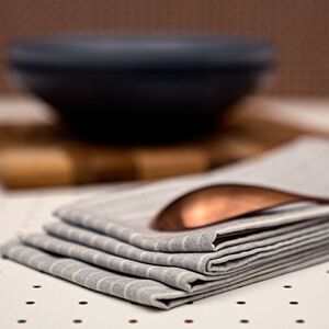 Designed for daily use at home, special occasions, or as a perfect gift. This set of 4 cloth napkins is an ideal substitute for single-use paper napkins. 100% cotton (62% upcycled). Dimensions: 19.5” x 18.5”.