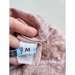 MEG Lazy Pink Red Plaid Check Cotton Seersucker Straight Midi Dress, Size M