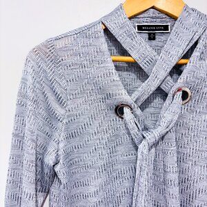 MELANIE LYNE Silver Metallic Tie-Front Top Shimmery Long Sleeve | Small *