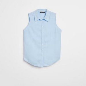 This sleeveless tie-front button-down shirt a warm weather essential. Made of a signature linen blend, it's as breezy and comfortable as it is gorgeous.
