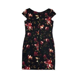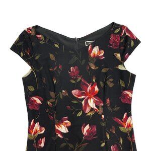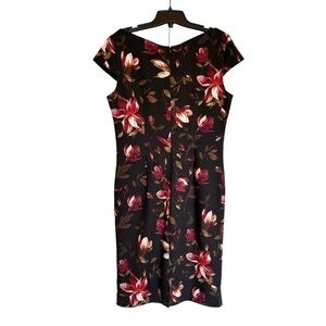 Melanie Lyne midi long black floral sheath dress casual cocktail cap sleeves dress size
