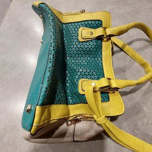 MELIE BIANCO "Leslie" Vegan Leather Handbag - Green/Yellow/Beige - Size Medium